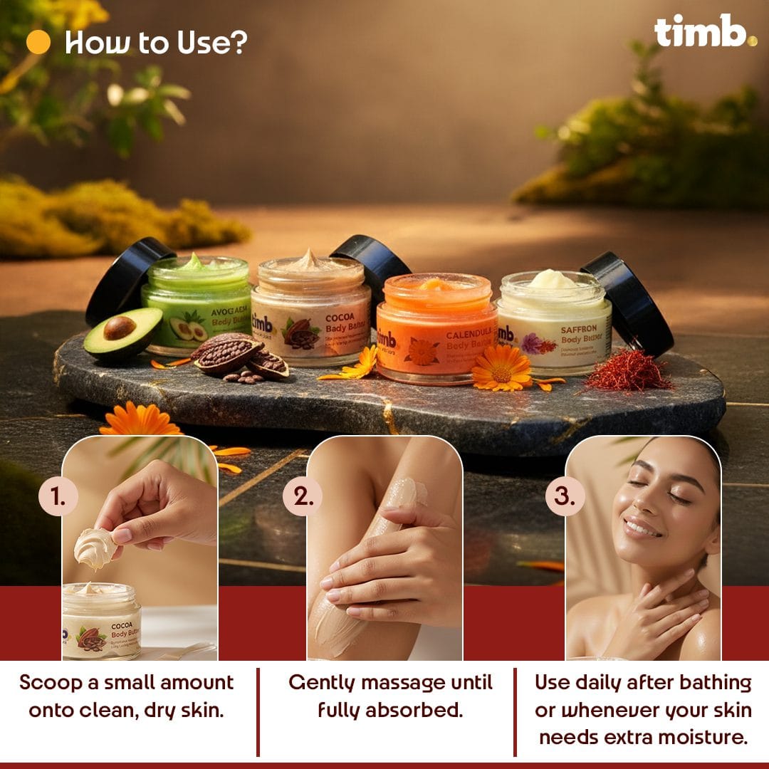 Timb’s Body Butter Combo is a game-changer! Skin feels plush after a week—no more winter cracks!